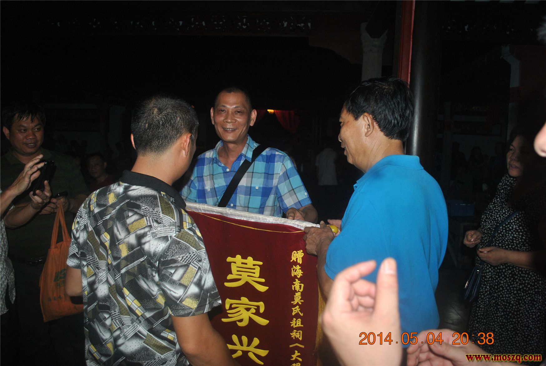 这次庆祝活动参加的还有远道而来的广州市高要,莫氏兄弟三十多人前来庆贺,广州市联谊会还赠送一面锦旗“莫家兴旺”给莫氏祖祠(大观堂)留念。整活动一直到晚上九点钟才结束。第二天早上八时,海南莫氏联谊会的领导和广州市,高要的宗亲共进早餐,欢送兄弟。